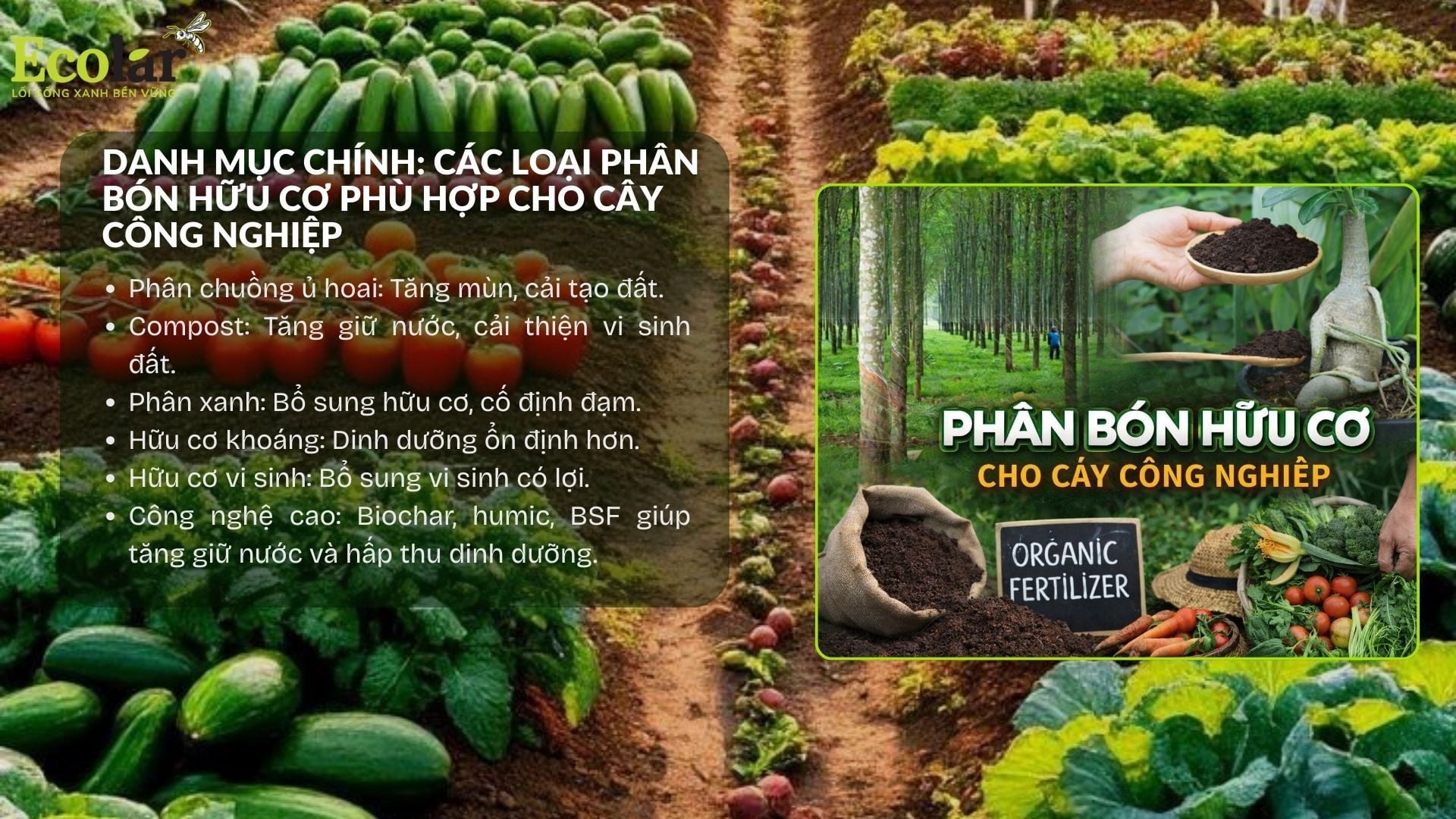 2. Danh mục chính: Các loại phân bón hữu cơ phù hợp cho cây công nghiệp (mô tả ngắn, ứng dụng)