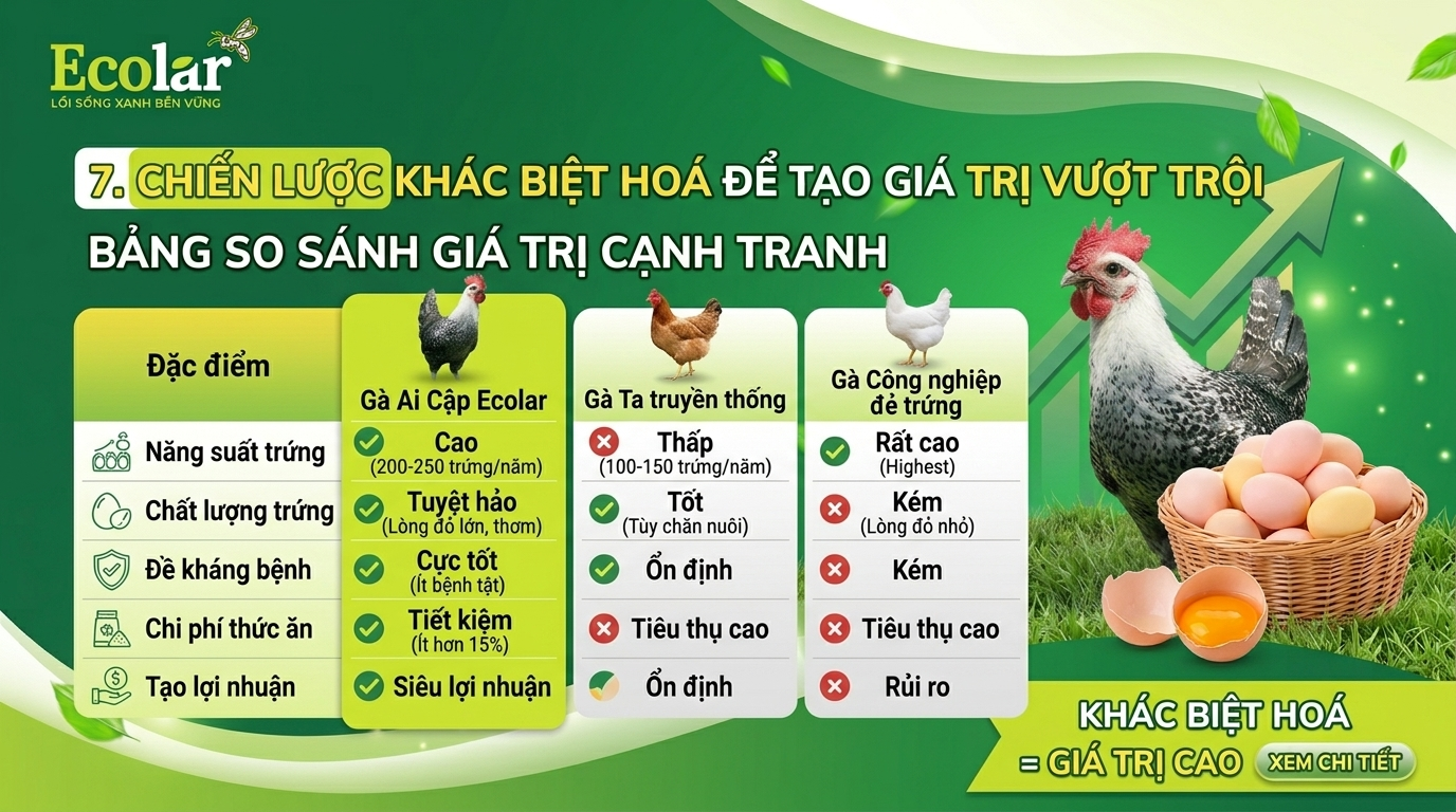 Chiến lược khác biệt hoá gà Ai Cập, chiến lược khác biệt hoá gà Ai Cập nên tập vào: giá trị dinh dưỡng (chứng nhận lab), thuần sạch (không kháng sinh), giá trị văn hóa (câu chuyện nguồn gốc), và chuỗi cung ứng minh bạch. Theo Nielsen, 66% người tiêu dùng sẵn sàng trả thêm cho sản phẩm bền vững (Nielsen, 2015). Ví dụ cụ thể: đánh dấu “thuần sạch” và tăng giá 20% (từ 100.000đ lên 120.000đ/chiếc) — mẫu thử tại 2 chợ cho thấy tỷ lệ mua không giảm quá 15%. Tôi đã từng thử A/B test giá với 500 khách; kết quả rõ ràng.