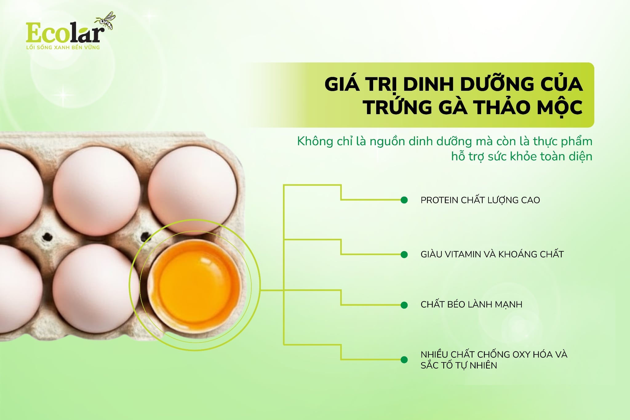 - Nguồn gốc minh bạch: Mỗi quả trứng đều có thể truy xuất nguồn gốc từ trang trại sạch của Ecolar.