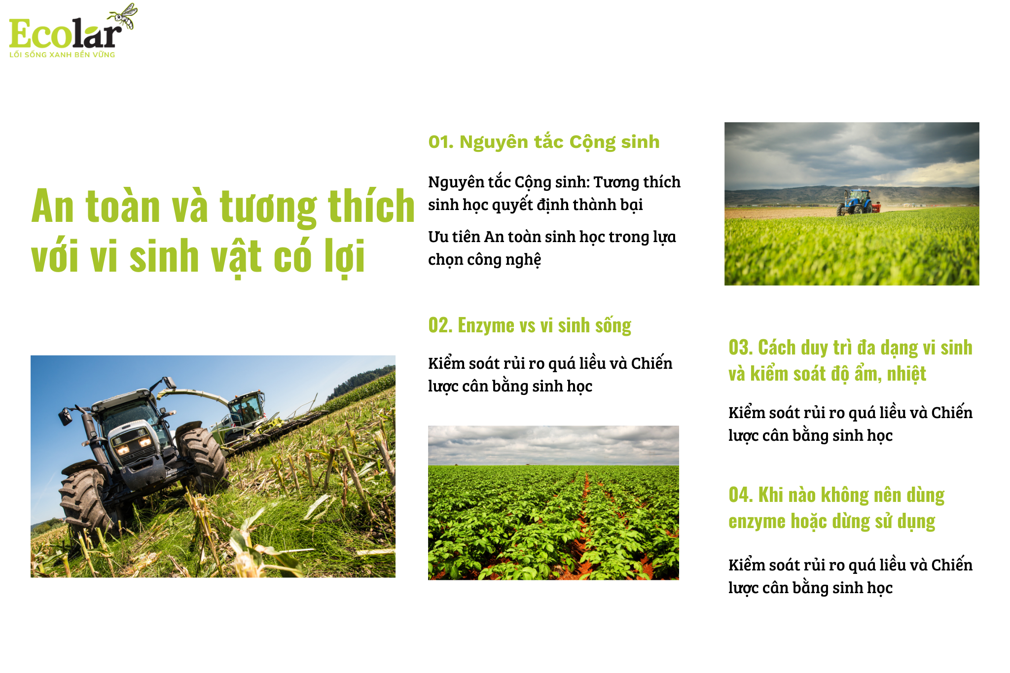 Chính vì vậy, nguyên tắc bất di bất dịch trong việc lựa chọn chế phẩm hỗ trợ là phải đặt tiêu chí an toàn cho hệ vi sinh lên hàng đầu. Một sản phẩm enzyme đạt chuẩn không những không được chứa các chất bảo quản gây hại cho các chủng vi sinh vật hữu ích (như cố định đạm, phân giải lân) mà còn phải tạo môi trường nền thuận lợi để chúng sinh sôi nảy nở. Đây là tiền đề quan trọng để tạo ra dòng phân bón hữu cơ khoáng giàu dinh dưỡng, nơi mà cả enzyme và vi sinh vật cùng tồn tại song hành để kiến tạo nên độ phì nhiêu bền vững cho đất đai, thay vì triệt tiêu lẫn nhau do sự thiếu hiểu biết trong khâu lựa chọn công nghệ đầu vào.