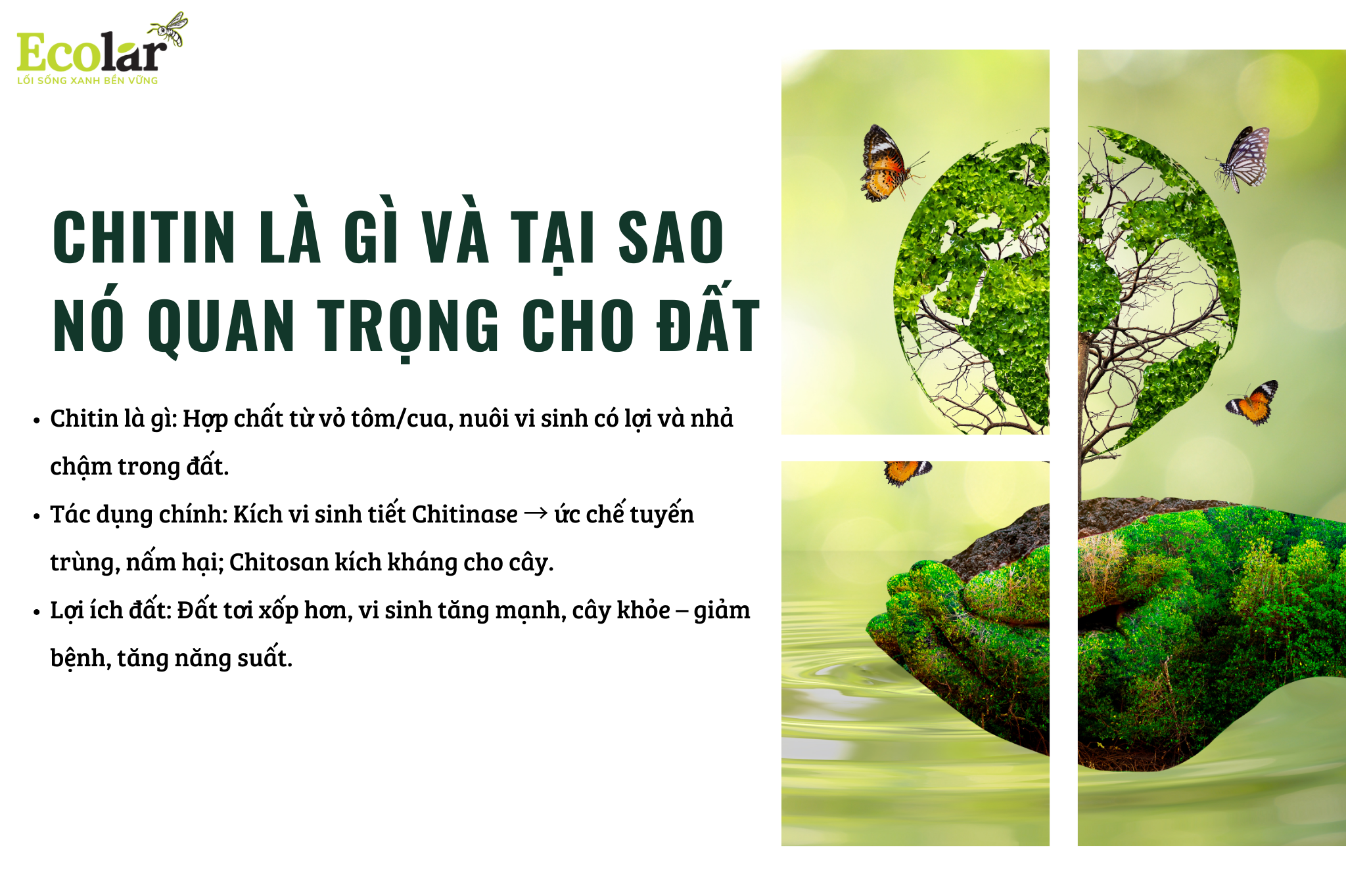 Không chỉ đơn thuần là một loại phân bón hữu cơ, chitin hoạt động như một “công tắc sinh học”, giúp đất tự bảo vệ, cây tăng sức đề kháng và hệ sinh thái đất dần được tái thiết theo hướng bền vững. Bài viết này sẽ giúp bạn hiểu rõ chitin là gì, cơ chế hoạt động trong đất, cách xử lý – lên men – ứng dụng chitin đúng kỹ thuật, cũng như những lưu ý an toàn quan trọng để khai thác tối đa giá trị của nguồn nguyên liệu sinh học đặc biệt này.