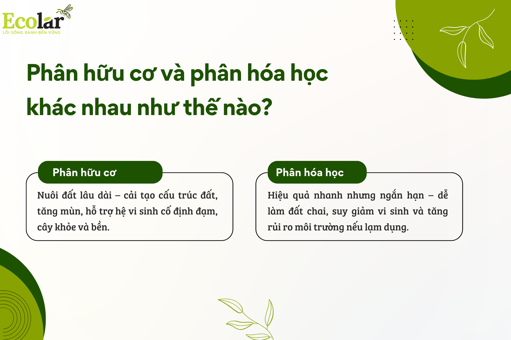 Tóm lại: Việc thấu hiểu sự khác biệt giữa phân hữu cơ và phân hóa học giúp bạn chủ động hơn trong việc chăm sóc vườn tược. Nếu muốn đất khỏe và cây bền, hãy ưu tiên bón lót bằng phân hữu cơ và bổ sung thêm các chế phẩm phân vi sinh cố định đạm để kiến tạo một nền tảng nông nghiệp vững chắc.