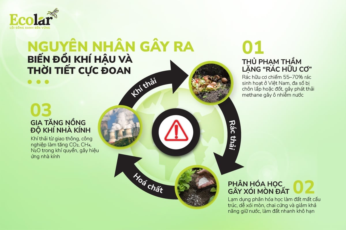 Khí nhà kính tăng, rác hữu cơ và phân hóa học khiến khí hậu ngày càng cực đoan