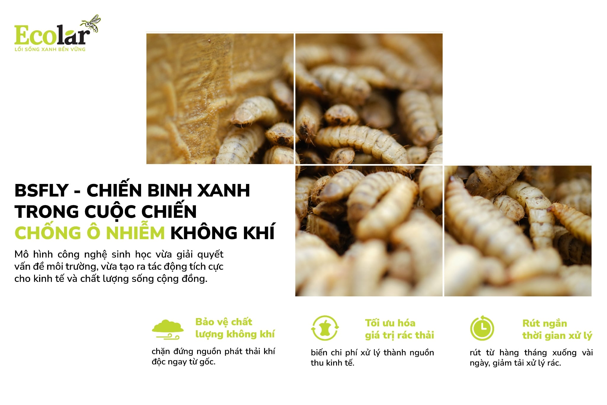 Ecolar nhìn thấy ở BSFly không chỉ là một công nghệ, mà là một cách tiếp cận bền vững để bảo vệ bầu không khí. Chúng tôi tin rằng mỗi tấn rác được xử lý đúng cách hôm nay là một khoảng trời thêm xanh cho ngày mai. Vì thế, Ecolar chọn đồng hành – cùng nông dân, doanh nghiệp và từng gia đình Việt – để biến rác thành tài nguyên, biến những lựa chọn nhỏ thành thay đổi lớn. Và rồi, khi một ngày bạn ngẩng đầu hít thật sâu, bạn sẽ biết mình đã góp phần vào làn gió trong lành ấy.