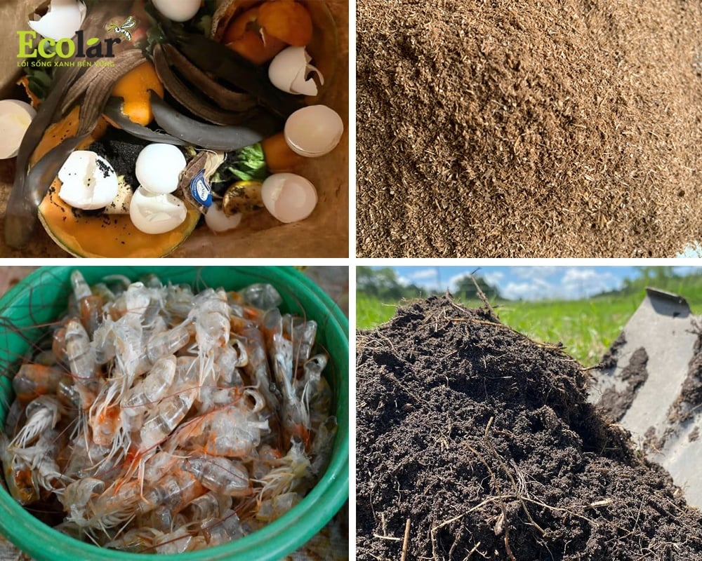 - Phế phẩm nông nghiệp: Vỏ cà phê, bã bia, rơm rạ… cũng được ấu trùng tiêu hóa khá tốt nếu trộn đúng tỉ lệ ẩm và carbon.