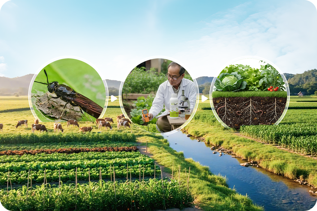 Chúng tôi không chỉ cung cấp sản phẩm, mà mang đến giải pháp xanh và sinh học toàn diện, dựa trên nền tảng công nghệ BSFly (ruồi lính đen) – biểu tượng của trí tuệ tự nhiên và sức mạnh tái tạo.