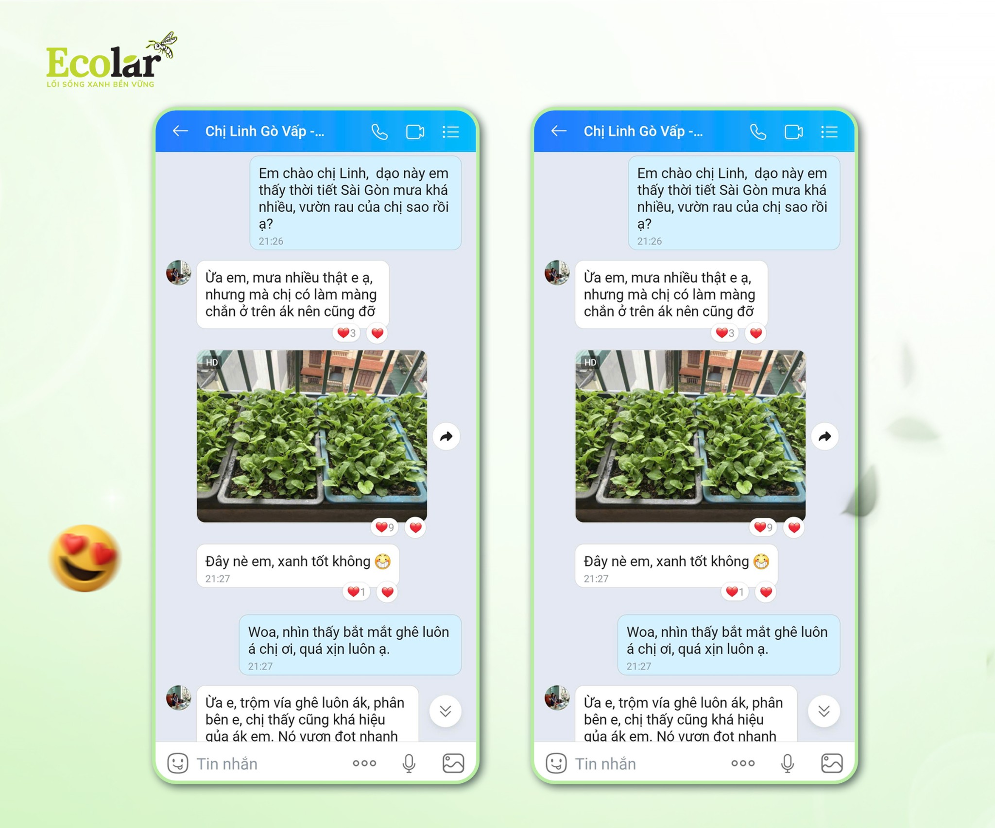 Theo thời gian, Ecolar nhận về ngày càng nhiều câu chuyện giản dị mà quý giá, là những bức ảnh chụp khu vườn xanh mướt ở ban công nhỏ, là tin nhắn kể rằng đất đã tơi và rau lên đều hơn, hay đơn giản chỉ là niềm vui khi thấy những luống rau mình chăm bỗng xanh tốt trở lại. Không phải là lời chuẩn bị sẵn, mà là những lời chia sẻ mộc mạc, giản dị, xuất phát từ cảm xúc thật của người trồng.