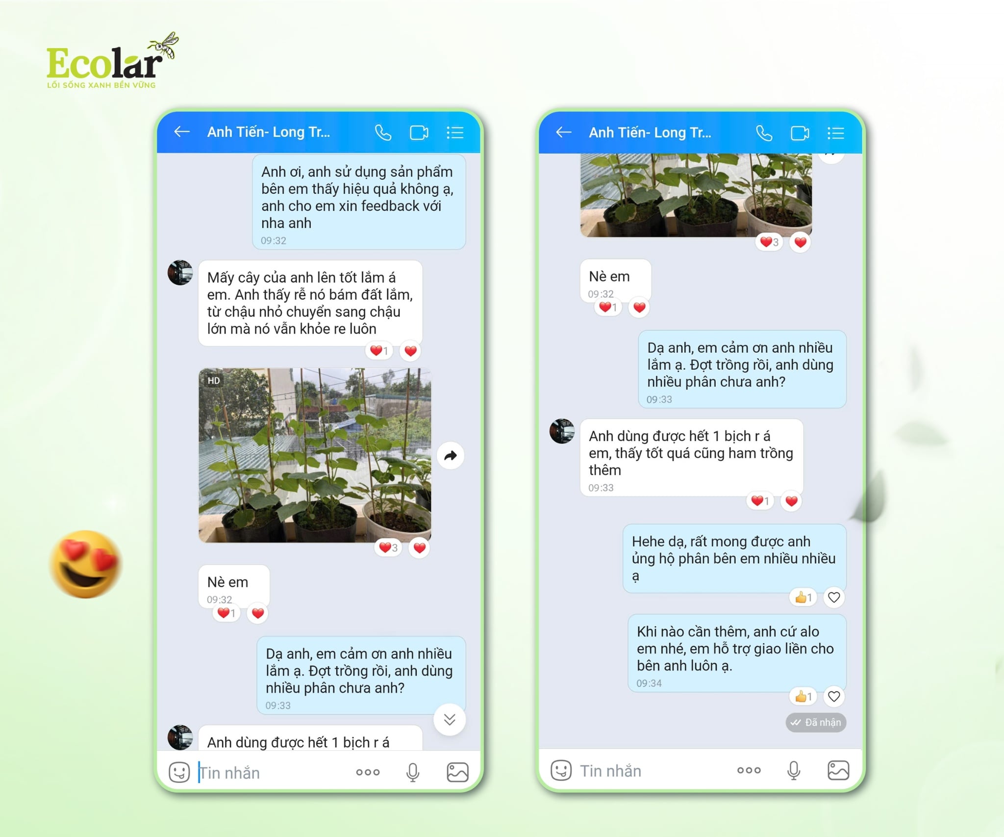 Dưới đây là những hình ảnh và chia sẻ thực tế từ khách hàng - những người đã để Ecolar đồng hành cùng trên hành trình giúp đất khỏe lại và cây phát triển tốt hơn mỗi ngày.
